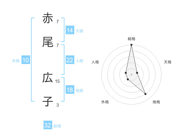 赤尾 広子さんの総格は32画の5点!