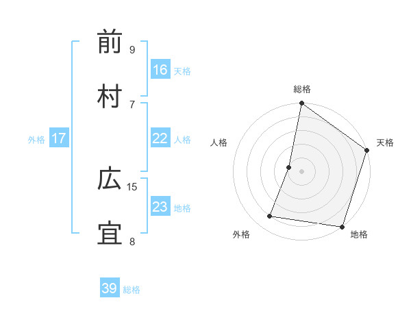 前村 広宜さんの総格は39画の5点!