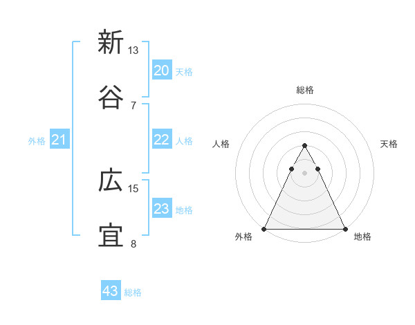 新谷 広宜さんを姓名の画数から五運を鑑定