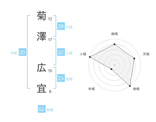 菊澤 広宜さんの総格は52画の4点!