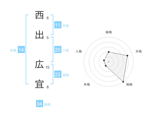 西出 広宜さんの天格は11画の4点!
