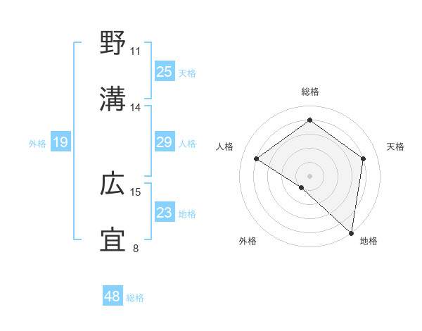 野溝 広宜さんの総格は48画の4点!
