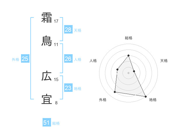 霜鳥 広宜さんを姓名の画数から五運を鑑定