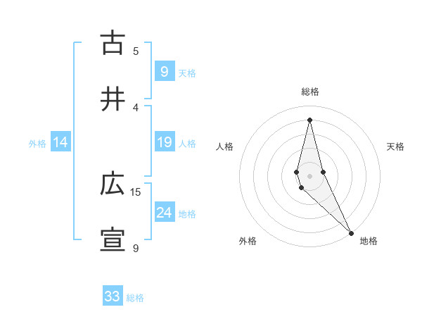 古井 広宣さんの総格は33画の4点!