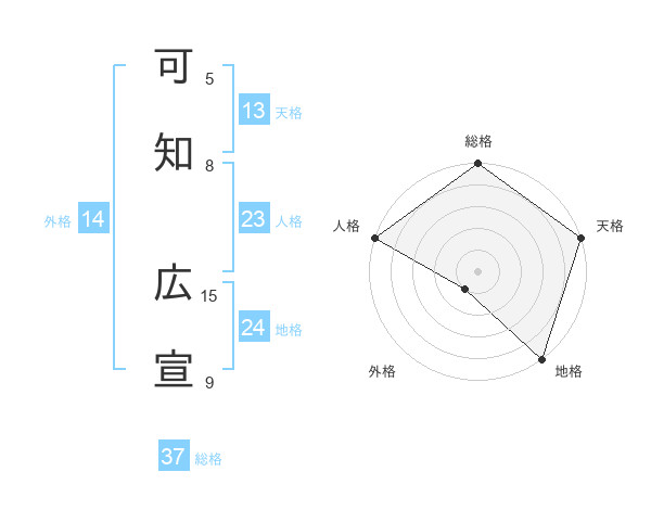 可知 広宣さんの総格は37画の5点!