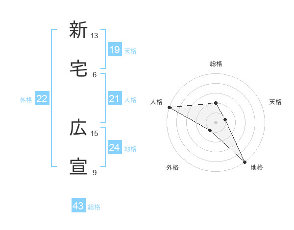 新宅 広宣さんを姓名の画数から五運を鑑定