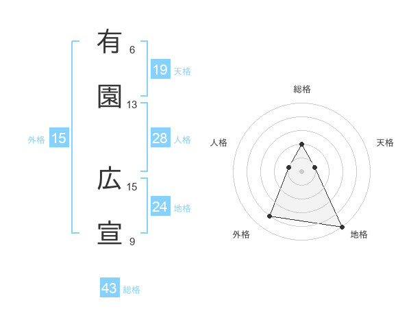 有園 広宣さんの総格は43画の2点!