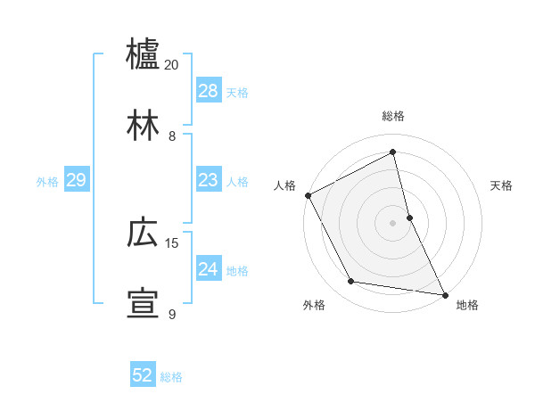 櫨林 広宣さんを姓名の画数から五運を鑑定