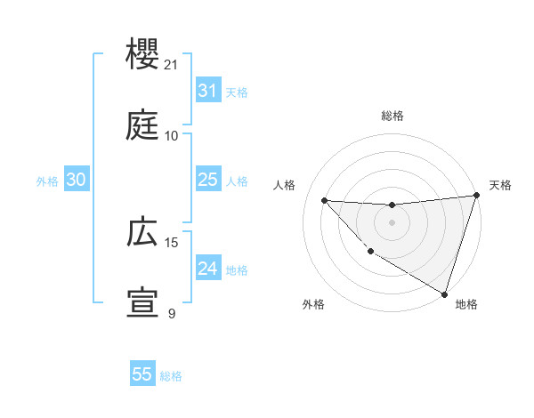 櫻庭 広宣さんの天格は31画の5点!