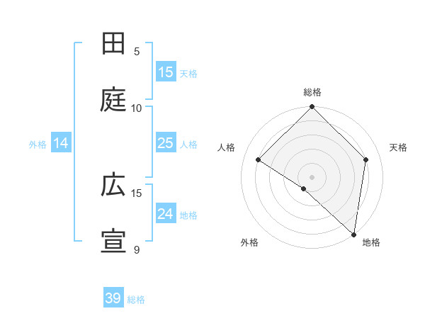 田庭 広宣さんの総格は39画の5点!