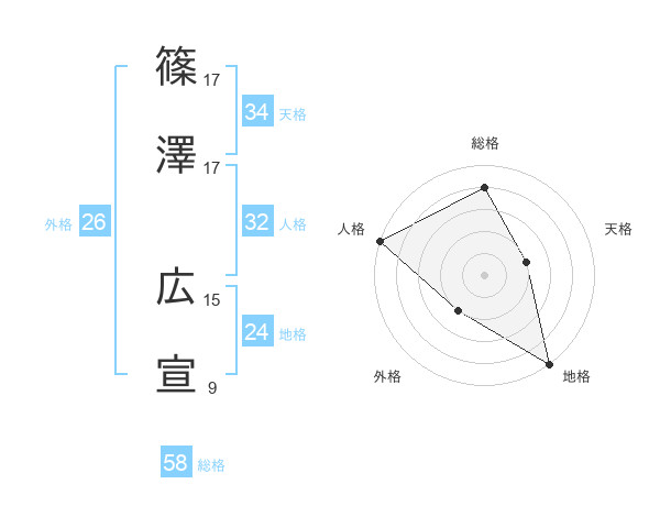 篠澤 広宣さんの総格は58画の4点!