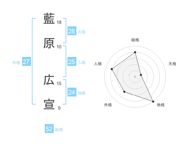 藍原 広宣さんを姓名の画数から五運を鑑定