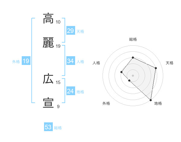 高麗 広宣さんの総格は53画の3点!
