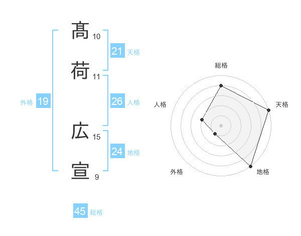 髙荷 広宣さんを姓名の画数から五運を鑑定