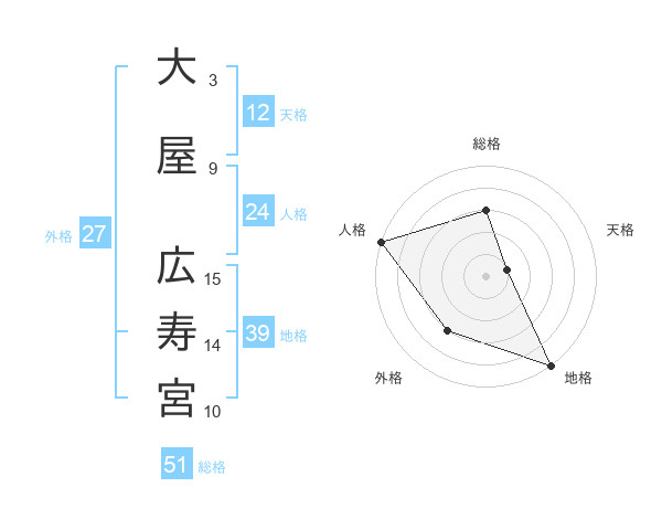 大屋 広寿宮さんを姓名の画数から五運を鑑定