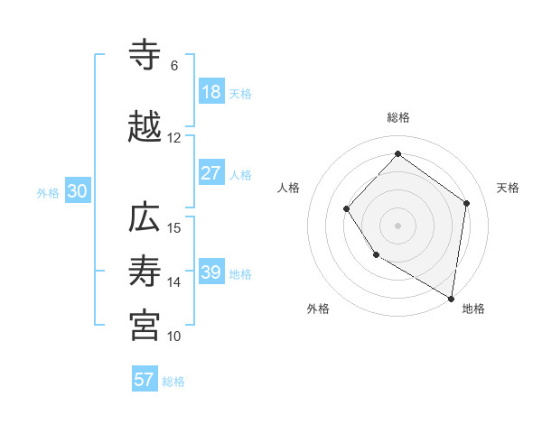 寺越 広寿宮さんの総格は57画の4点!