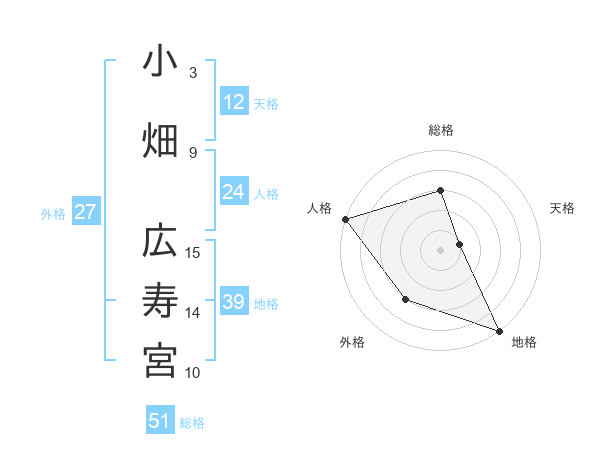 小畑 広寿宮さんの総格は51画の3点!