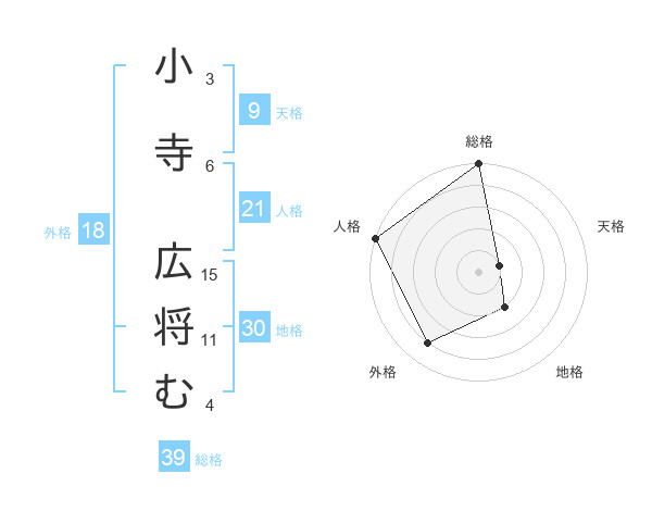 小寺 広将むさんの総格は39画の5点!