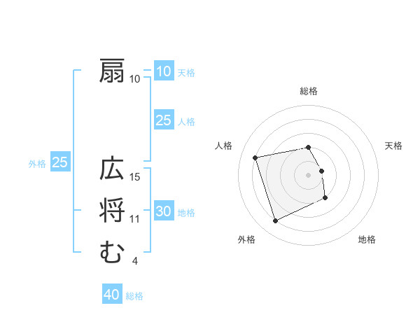 扇 広将むさんの総格は40画の2点