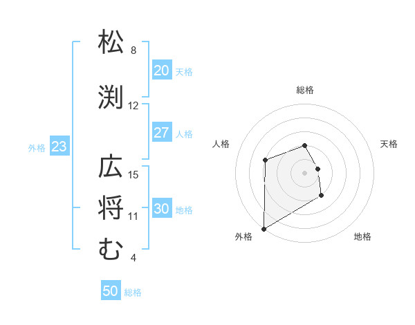 松渕 広将むさんを姓名の画数から五運を鑑定