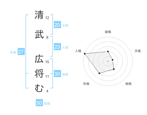 清武 広将むさんの総格は50画の2点!