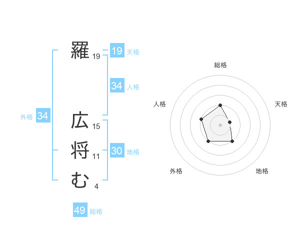 羅 広将むさんの総格は49画の2点!