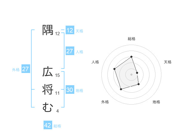 隅 広将むさんを姓名の画数から五運を鑑定