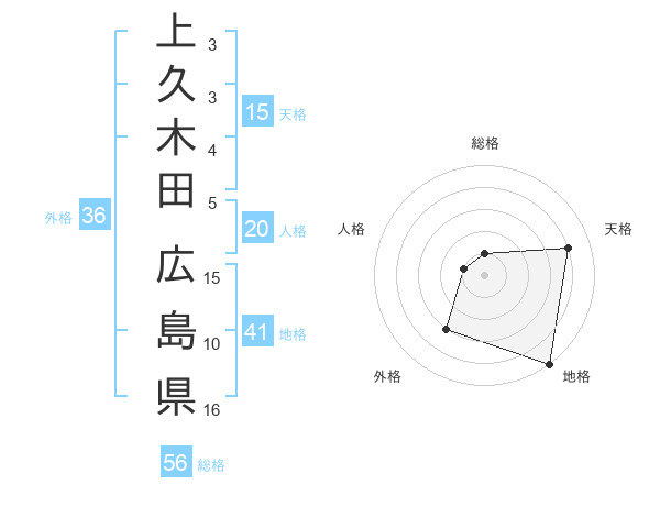 上久木田 広島県さんを姓名の画数から五運を鑑定