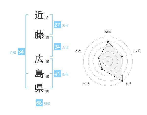 近藤 広島県さんを姓名の画数から五運を鑑定