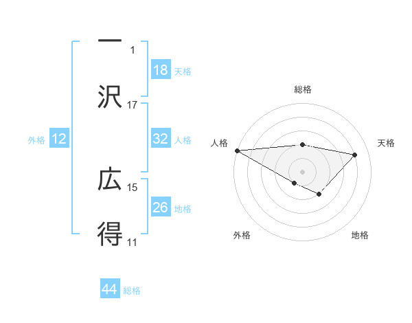一沢 広得さんの総格は44画の2点!