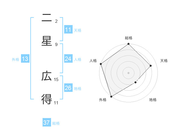 二星 広得さんの総格は37画の5点!