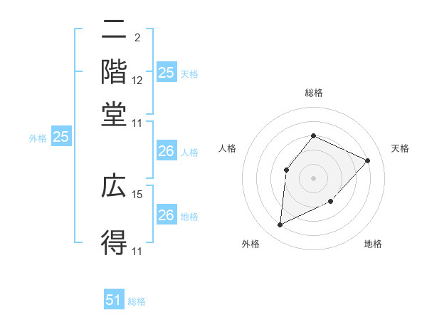二階堂 広得さんを姓名の画数から五運を鑑定