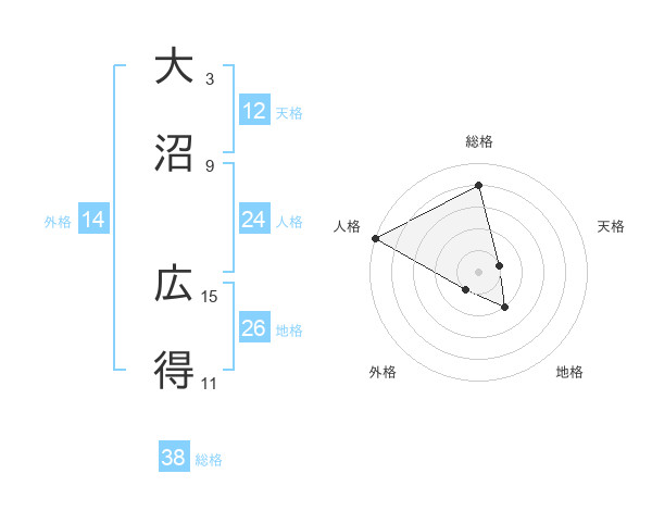 大沼 広得さんの総格は38画の4点!