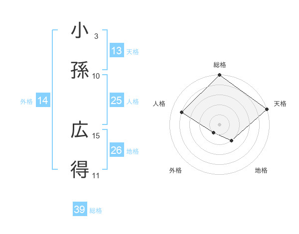 小孫 広得さんの総格は39画の5点!