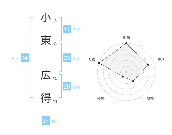 小東 広得さんの総格は37画の5点!
