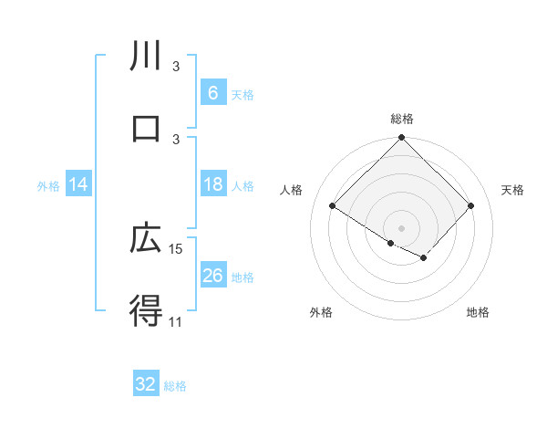 川口 広得さんの総格は32画の5点!