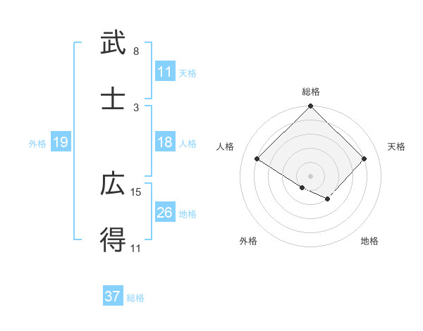 武士 広得さんの総格は37画の5点!
