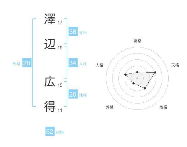 澤辺 広得さんの総格は62画の1点!
