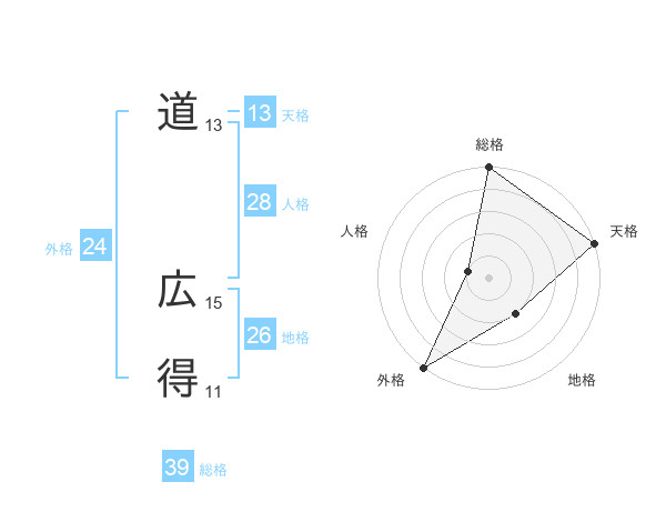 道 広得さんの総格は39画の5点!