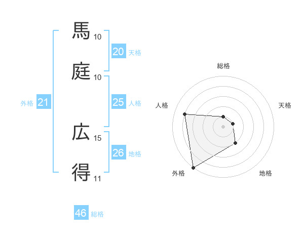 馬庭 広得さんを姓名の画数から五運を鑑定