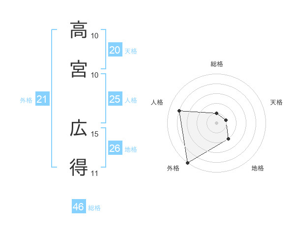 高宮 広得さんの地格は26画の2点!