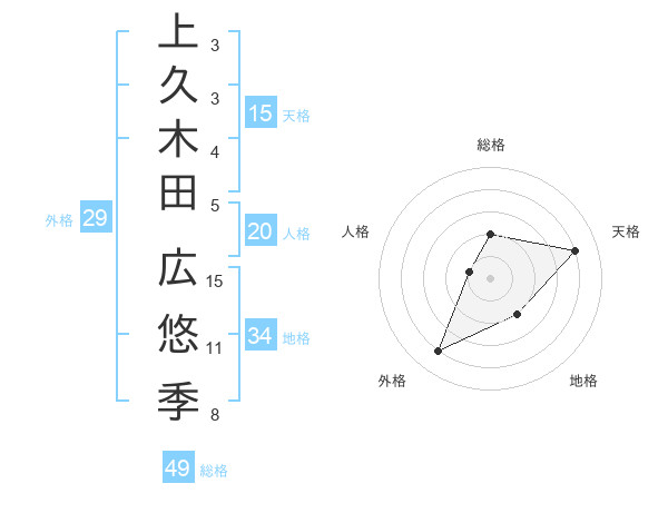 上久木田 広悠季さんの総格は49画の2点!