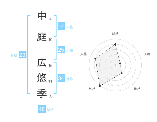中庭 広悠季さんの総格は48画の4点!