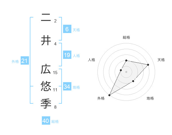 二井 広悠季さんを姓名の画数から五運を鑑定