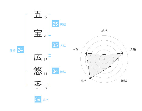 五宝 広悠季さんを姓名の画数から五運を鑑定