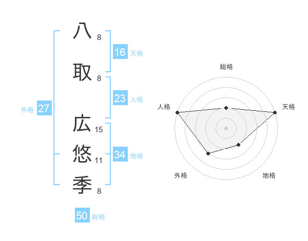 八取 広悠季さんの総格は50画の2点!