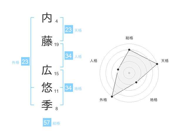 内藤 広悠季さんを姓名の画数から五運を鑑定