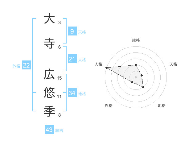 大寺 広悠季さんを姓名の画数から五運を鑑定