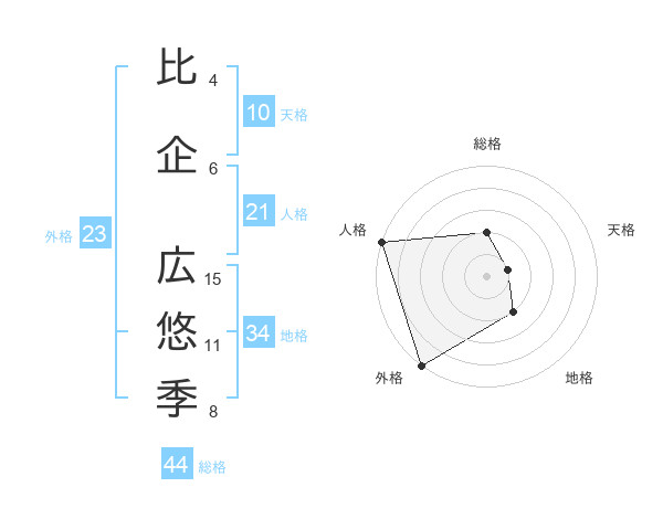 比企 広悠季さんを姓名の画数から五運を鑑定