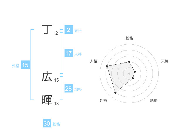 丁 広暉さんの総格は30画の2点!